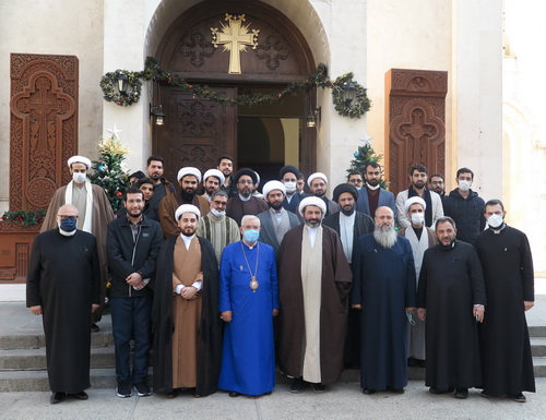 روز سه شنبه مورخ 14 دی ماه 1400 حجت الاسلام والمسلمین دکتر محمد علی شمالی رئیس موسسه بین المللی مطالعات اسلامی و حجت الاسلام والمسلمین محمد صادق امین دین مدیر دفتر ادیان و مذاهب بین الملل حوزههای علمیه با همراهی گروهی 27 نفره از حوزویان فعال در عرصههای بین الملل موسسه بین المللی مطالعات اسلامی قم جهت تبریک سال نو مسیحی و میلاد مسیح و ابلاغ پیام تبریک مدیریت محترم حوزه های قم حضرت آیت الله اعرافی، با اسقف اعظم سیبوه سرکیسیان خلیفه ارامنه تهران دیدار کردند. در این دیدار اسقف اعظم سیبوه سرکیسیان و حجت الاسلام والمسلمین دکتر محمدعلی شمالی و حجت الاسلام والمسلمین محمدصادق امین دین در مورد سابقه تعامل و گفتگوی بین ادیان و همکاری های صورت گرفته و گسترش فعالیتهای حوزه و خلیفه گری ارمنه اشاره نمودند.