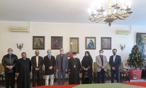 روز سه شنبه مورخ 21 دی 1400 به مناسبت سال نو و میلاد عیسی مسیح دکتر یاسر احمد وند، معاون فرهنگی وزارت فرهنگ و ارشاد اسلامی به همراهی کارکنان اداره ادیان و فرق در سالن اجتماعات خلیفه گری با اسقف اعظم سیبوه سرکیسیان، خلیفه ارامنه تهران دیدار به عمل آوردند.