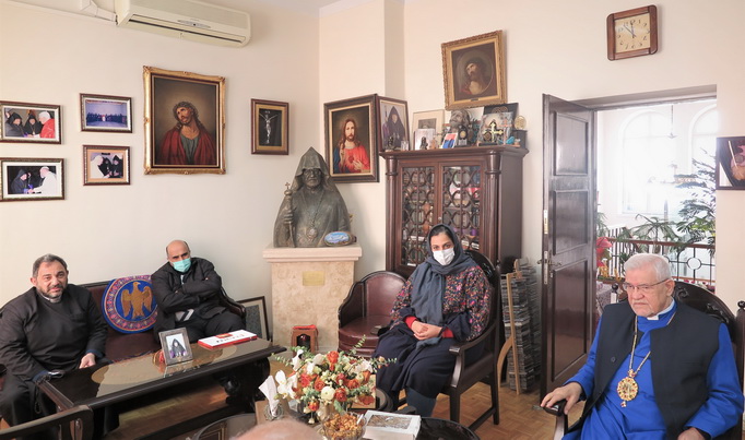 روز شنبه مورخ 2 بهمن 1400 اسقف اعظم سیبوه سرکیسیان خلیفه ارامنه تهران، جناب آقای حق شناس، عضو سابق شورای شهر تهران و رئیس نشریه نیمروز و همکارنشان آقای مرتضی رحیم نواز، خانم ها بهناز شوهانی و ساناز آرین فر را که جهت تبریک سال نو و میلاد عیسی مسیح تشریف آورده بودند را به حضور پذیرفتند.